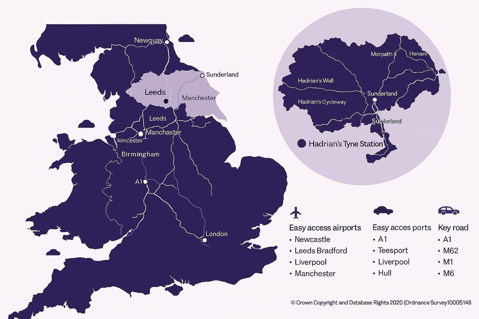 - Air: Leeds Bradford, Teesside, and Newcastle airports are within 90 minutes of most business centres.