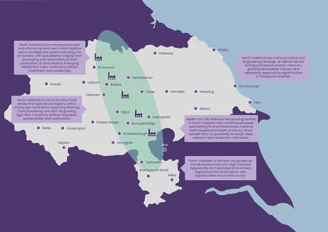North Yorkshire offers a rich and varied industrial landscape that mirrors the diversity of our market towns, city, coastal and rural communities. From well-established sectors that span the entire region, such as advanced manufacturing, food production, and tourism, to place-specific specialisms like digital innovation in Harrogate or agri-tech in the Vale of York, the county delivers tailored opportunities for growth.
